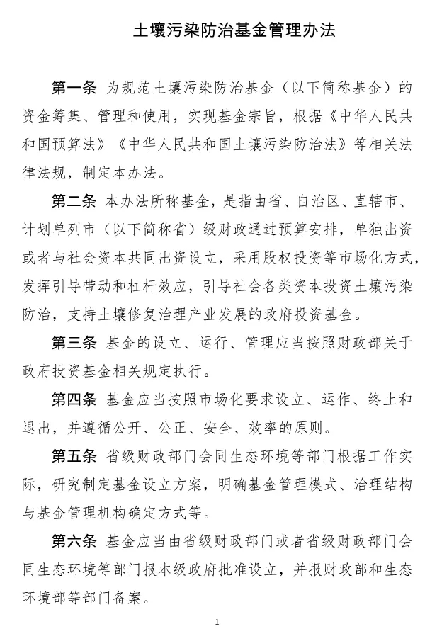 為規(guī)范土壤污染防治基金的資金籌集、管理和使用,實現(xiàn)基金宗旨,根據(jù)《中華人民共和國預算法》《中華人民共和國土壤污染防治法》等相關法律法規(guī),我們制定了《土壤污染防治基金管理辦法》?,F(xiàn)予印發(fā),請遵照執(zhí)行。